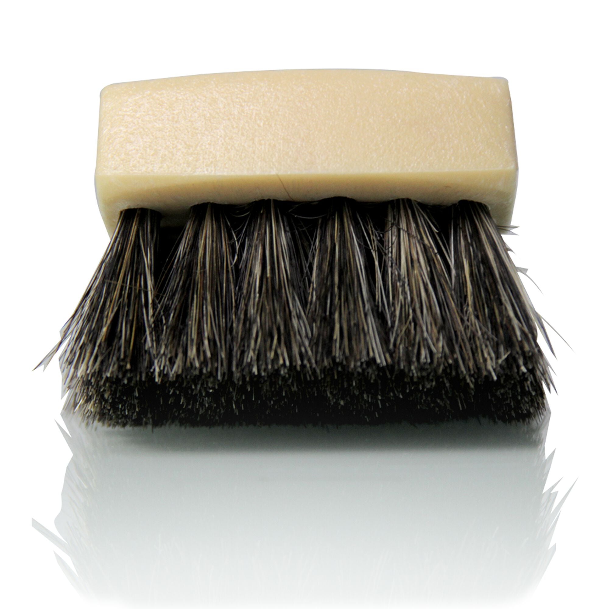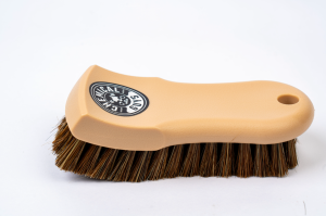 This brush offers a gentle. effective cleaning solution for your beloved leather surfaces. Crafted with synthetic horse hair bristles. it tackles dirt and stains while remaining gentle to protect your sensitive leather. The long bristles effortlessly reach deep into the pores of leather. fabric. canvas. and convertible tops. helping to break down and lift away embedded grime for a wonderfully thorough clean.