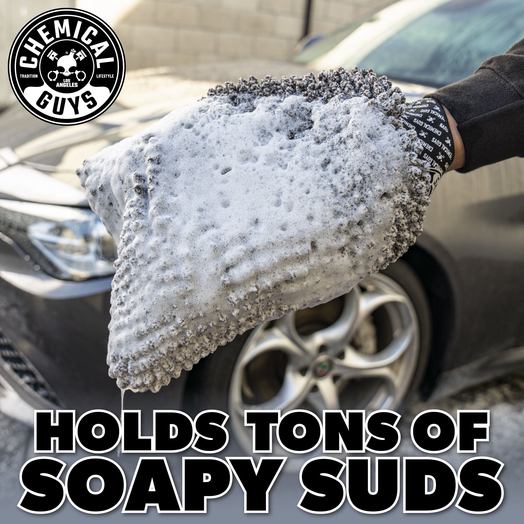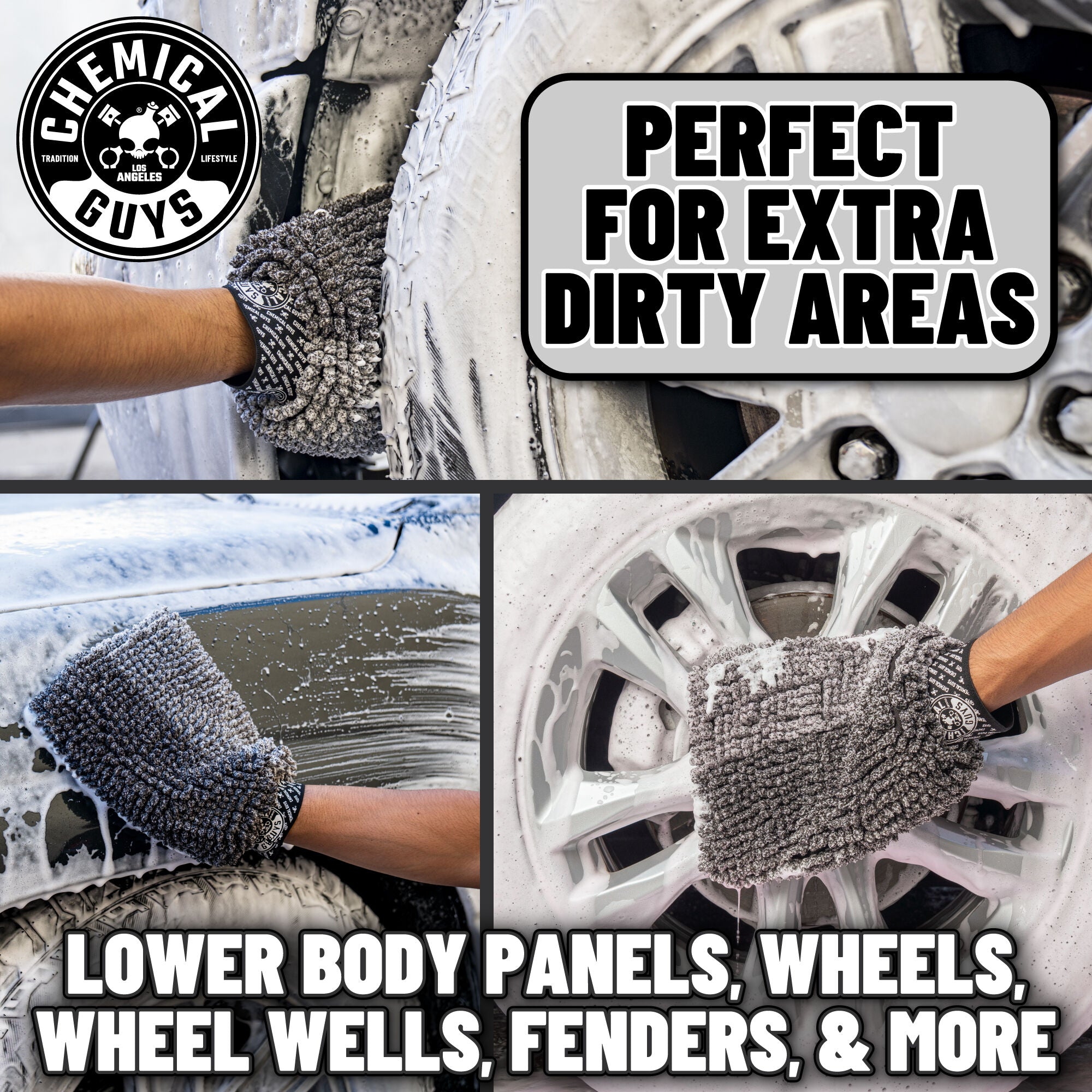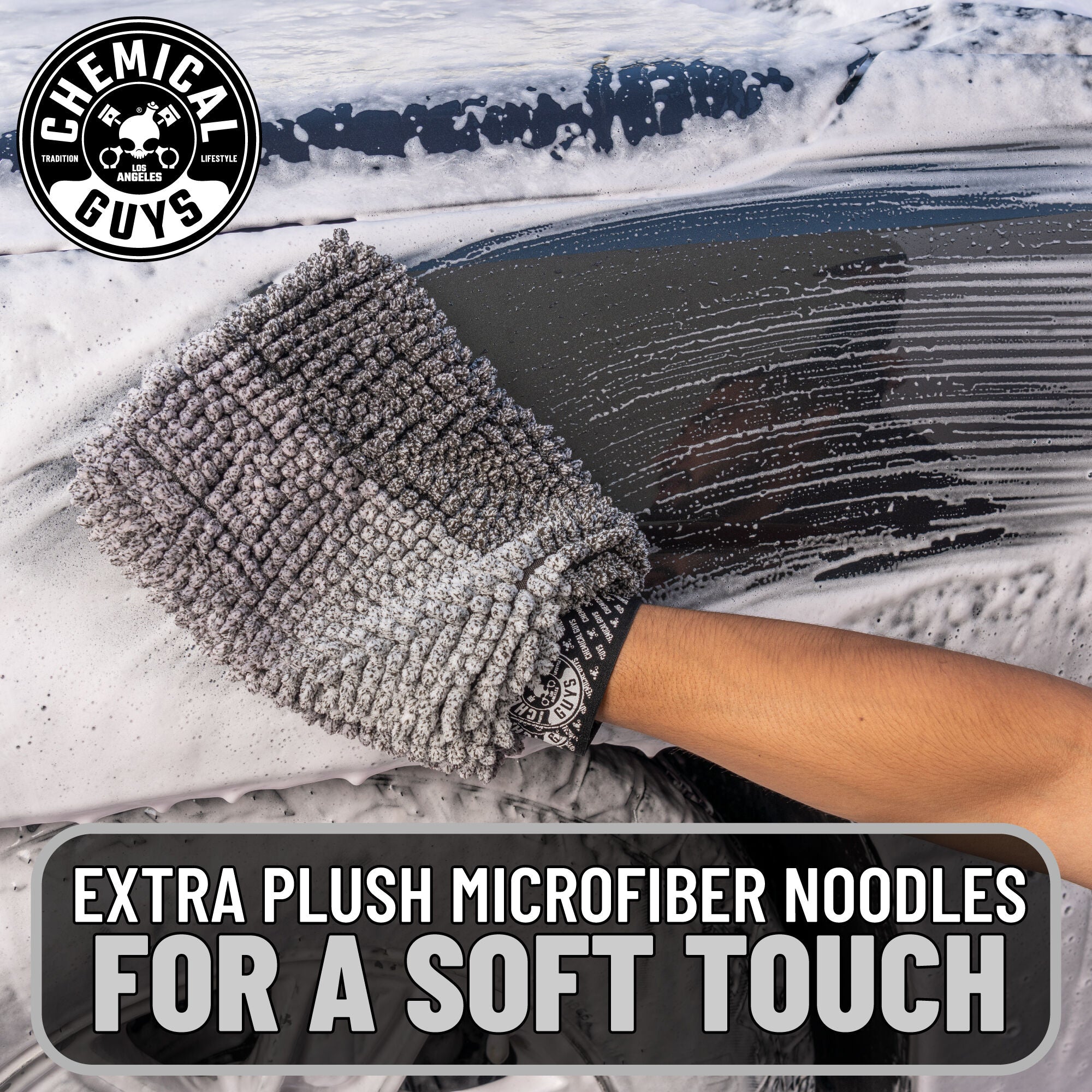 The PileDriver detailing mitt features unique Micro Nubs designed to hold extra suds while gently lifting and removing heavy dirt and grime from surfaces.